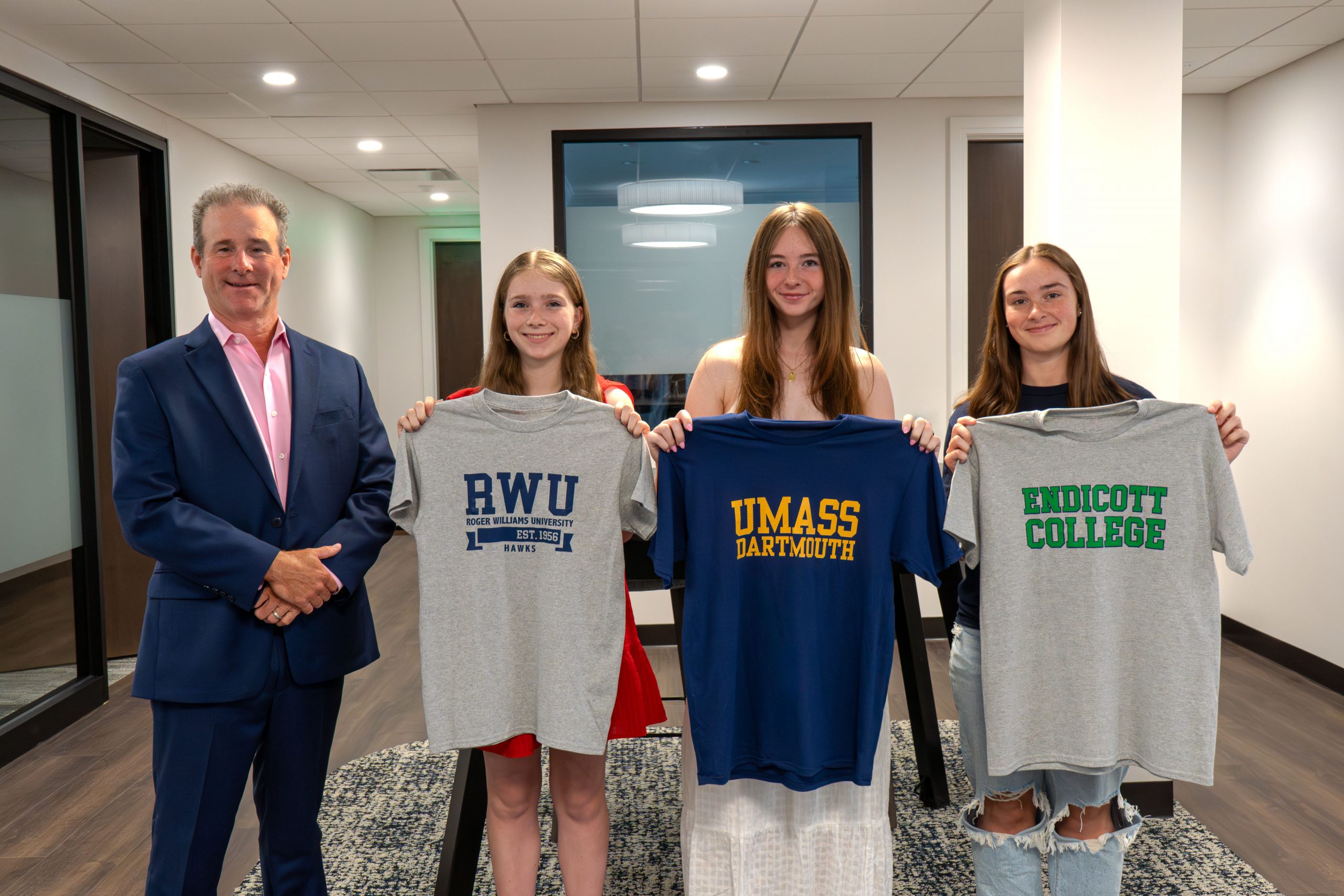 From left to right: Joseph T. Baptista Jr., President & CEO of Mechanics Cooperative Bank, Alexandra True of Apponequet Regional High School attending Roger Williams University, Amelia Breese of Fairhaven High School attending UMass Dartmouth, and Cady Morrison of Bridgewater-Raynham High School attending Endicott College.