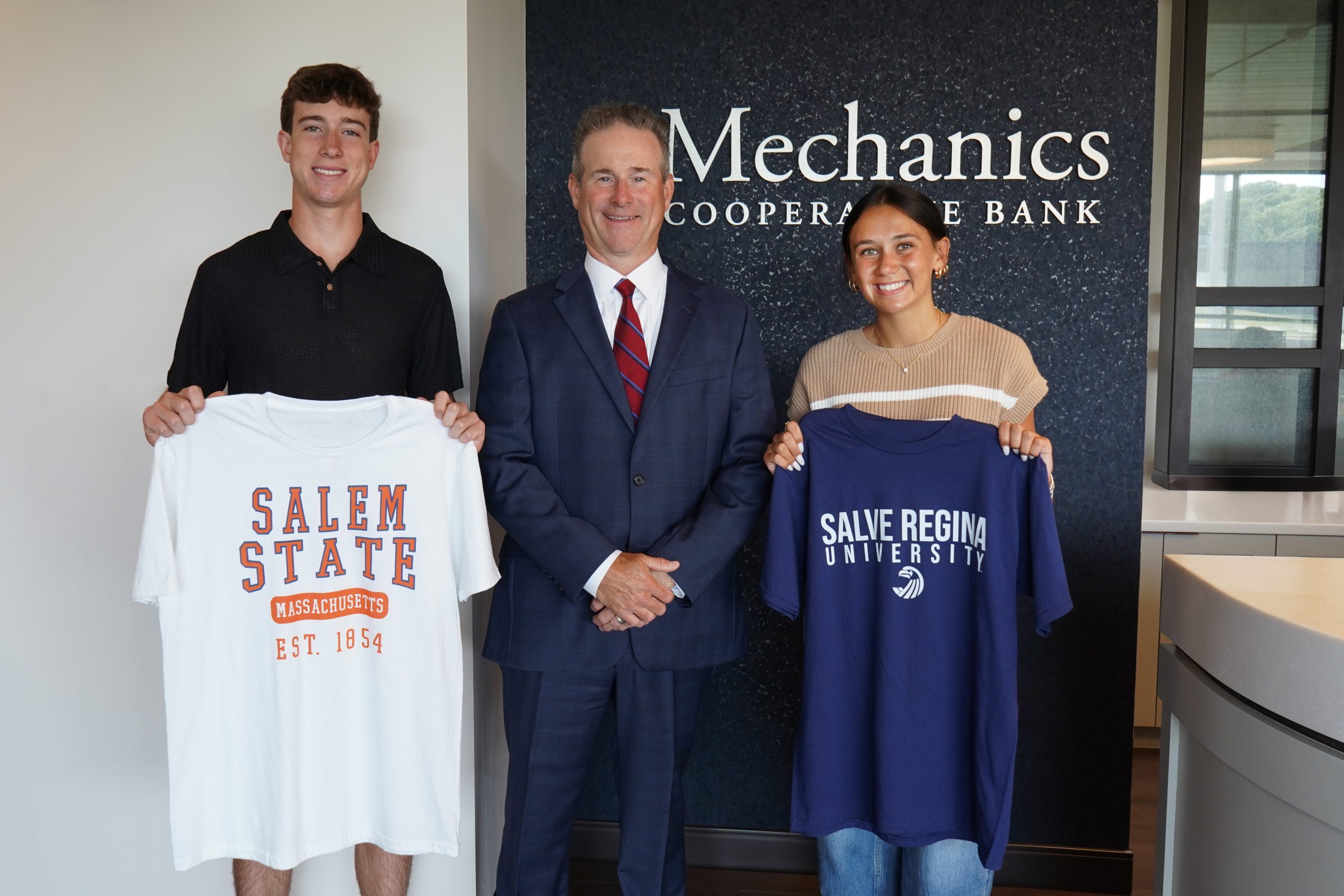 From left to right: John Payne of Seekonk High School attending Salem State University, Joseph T. Baptista Jr., President & CEO of Mechanics Cooperative Bank, and Camryn Jaye Emond of Taunton High School attending Salve Regina University.